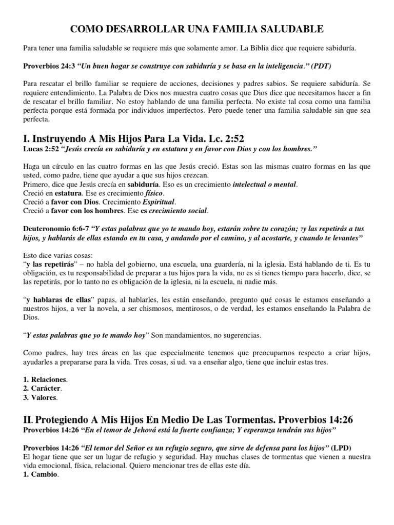 Como Desarrollar Una Familia Saludable Bosquejo | Sabiduría | Dios