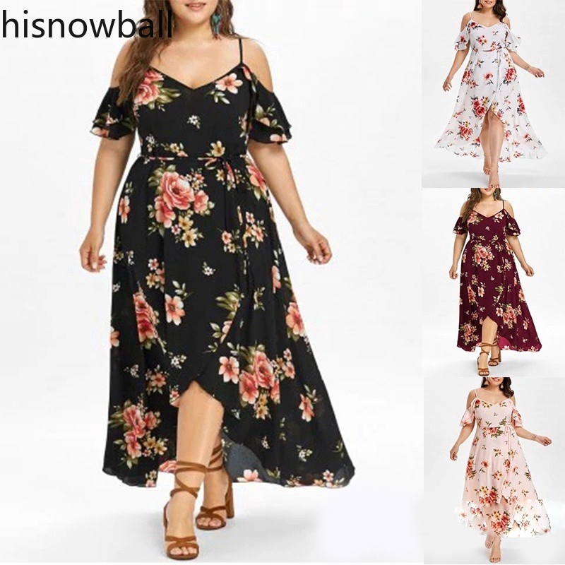 Plus Size Women S Fashion Hawaiian Cold Shoulder Maxi Dress Shopee Philippines