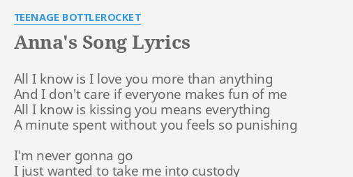 Anna S Song Lyrics By Teenage Bottlerocket All I Know Is