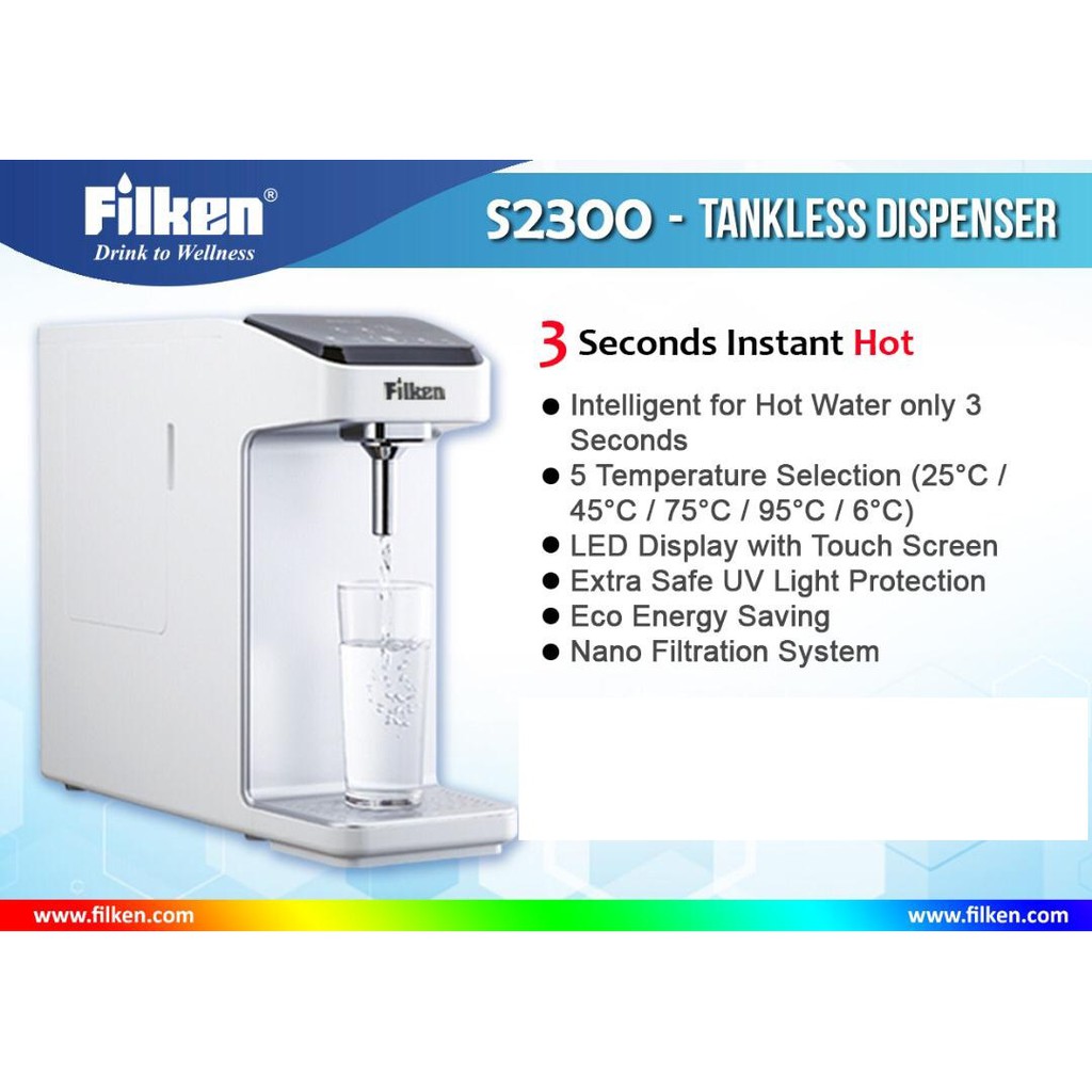 Filken S2300 Instant Hot And Cold Water Dispenser Indoor Water Filter Tankless Shopee Malaysia