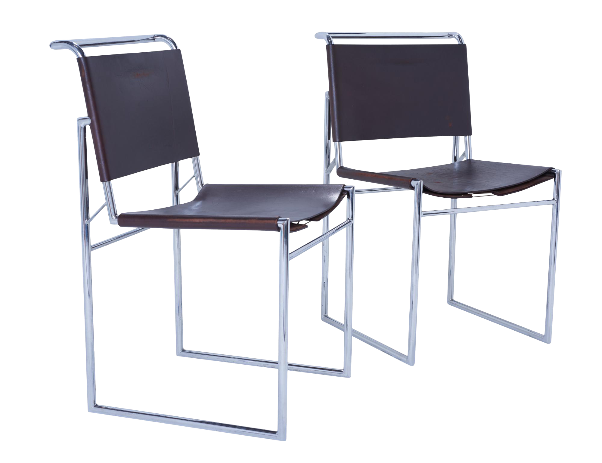 Willy Rizzo For Cidue Brown Leather Chrome Dining Chair Italy 123883